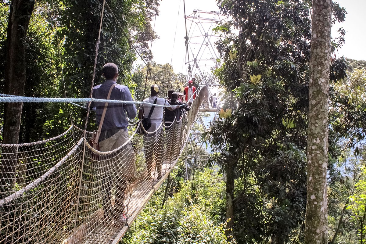 Rwanda’s landscapes are among the most picturesque in Africa. Rolling green hills stretch across the countryside, while volcanic peaks dominate the north in Volcanoes National Park. In the west, the tranquil waters of Lake Kivu provide beautiful beaches and lakeside towns, while ancient rainforest blankets the mountains of Nyungwe Forest National Park.